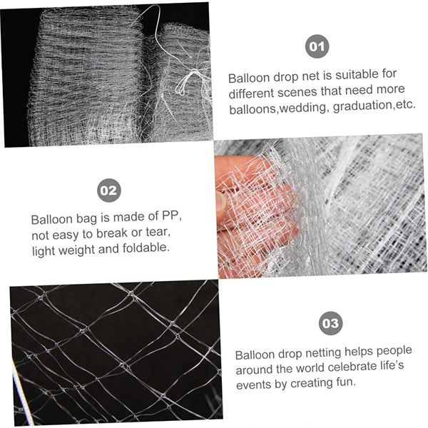 Ilmapallon pudotusverkkoon joustava verkkorakenne, joka pitää balloons in place ja yhdistettynä niihin luodakseen upean asettelun. Halusitpa sitten koristella suuren koristeellisen ilmapalloverkon ostoskeskuksen tapahtumaan tai luoda sydämenmuotoisen ilmapalloverkon romanttisiin häihin, NiuN® kaikki vastaa tarpeisiisi.