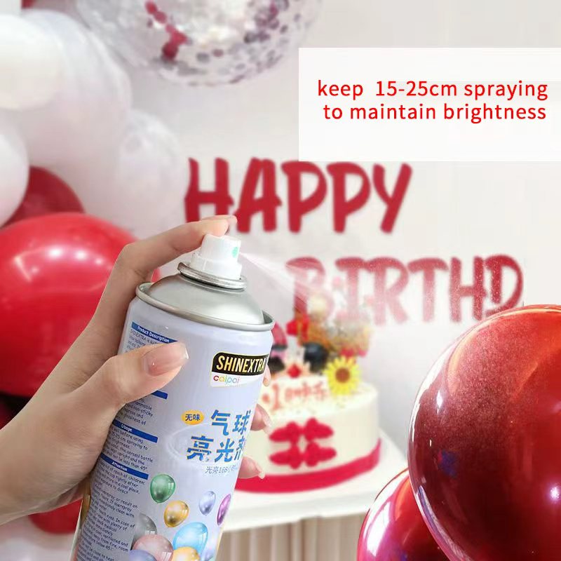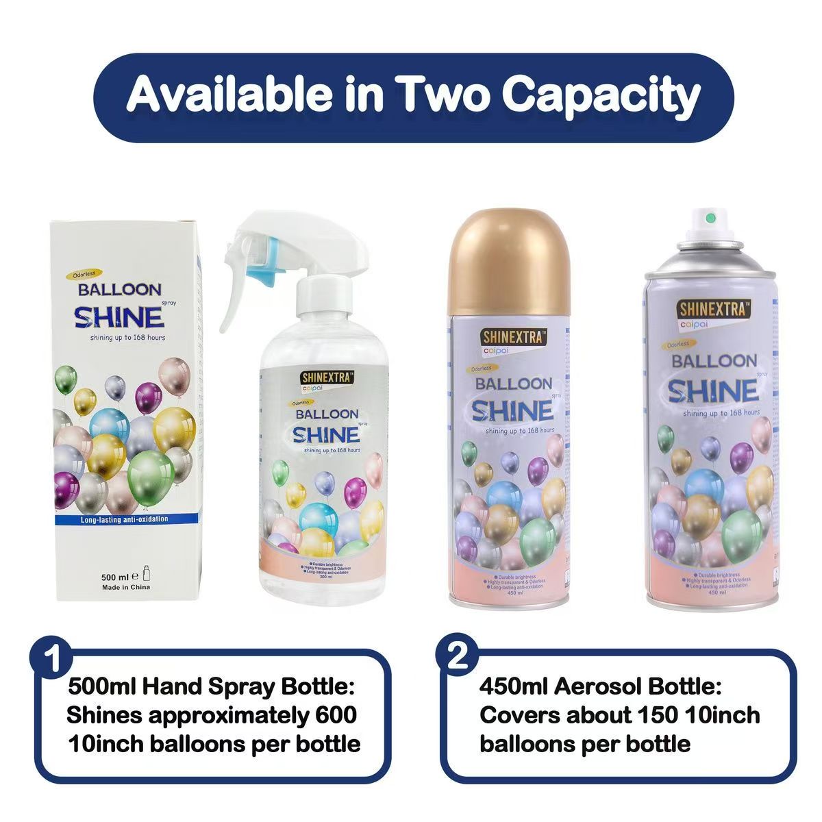 Balloon Shine Spray käyttää innovatiivista öljypohjaista kaavaa. Sen mikromolekyylinen rakenne tunkeutuu nopeasti ja tarttuu lateksin pintaan muodostaen saumattoman, kiiltävän suojakalvon. Käsitellyt ilmapallot voivat saavuttaa yli 300%: n kiiltävän korotuksen, mikä johtaa eläviin, rikkaisiin väreihin.