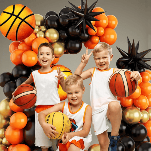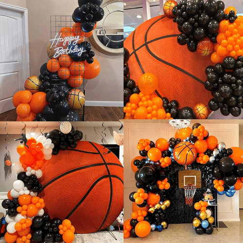 Koripallon ilmapalloseppelesarja symboloi urheiluhenkeä. Sen mukana tulee useita lateksipalloja ja useita foliopalloja. Kuten koripalloteemassa, tämän setin värit ovat pääasiassa oranssi ja musta, ja eri kerrosten tekemiseksimetallikultaiset lateksiilmapallotlisätään myös. Sen kokonaistyyli on erittäin houkutteleva, se voi välittömästi parantaa juhlasi tunnelmaa.