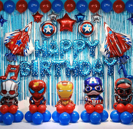 Syntymäpäiväjuhlien ilmapallokaari voidaan yhdistää teemapaperibanneriin, tupsuihin, folioilmapallopylväisiin, pöytäliinaan, taustaan jne.