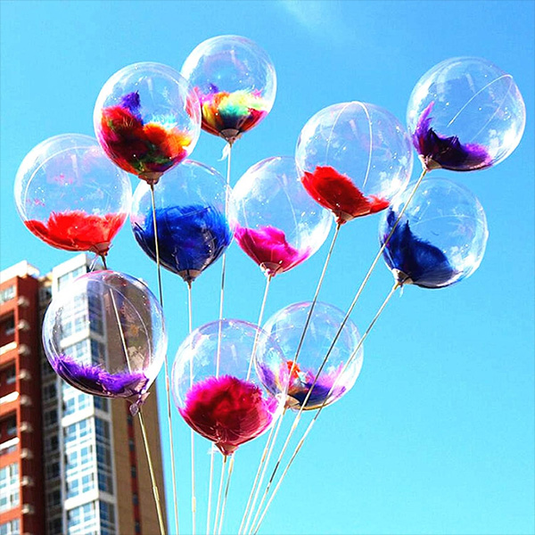 Tämä lanseerattu sulka täytetty bobopallo sisältää yli tusinaa täytettyjä höyheniä, kuten punainen, keltainen, sininen, vihreä ja värikäs. Tämä höyhen täytetty bobopallo sopii useimpiin tapauksiin, kuten syntymäpäiväjuhliin, hääihin, vauvan keräämiseen, ystävänpäivään, Halloweeniin, jouluun ja muihin. Laaja valikoima sovelluksia, suuria halkaisijaltaan bobopalloja voidaan käyttää laajasti syntymäpäivinä, häät, morsiamen suihku, valmistuminen, vauvan suihku tai joulu ja muut tapaukset ovat erinomainen sisustus.