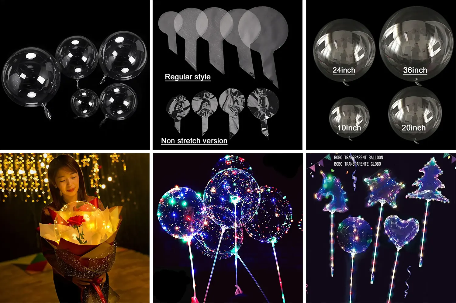 Ylämateriaalit, puhdas ja läpinäkyvä: Tuodut elintarvikelaatuiset ympäristöystävälliset polyesterikalvot valitaan, ja jokaisessa kirkkaassa bobopallossa on kristallin kaltainen korkea läpinäkyvyys ja kiilto. Inflaation jälkeen sillä on erilaisia käyttötarkoituksia ja upeita visuaalisia tehosteita. .