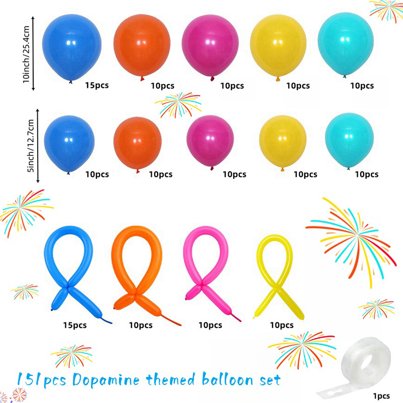 Yhteensä 151 kpl dopamiiniaiheisia värikkäitä ilmapallokaarisarjoja.