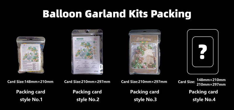 Ilmapallokaarisarjojen pakkaaminen riippuu myyntitilaisuudestasi. Jos myyt sen verkossa alla olevalla pakkaustyylillä nro 1 ja tyhjiö on hyvä sinulle, se voi auttaa sinua säästämään toimitustilaa ja toimituskuluja. Mutta jos myyt räätälöityjä värikkäitä ilmapallokaarisarjoja myymälässä, isompi pakkauspussi alle pakkaustyylin nro 2 tai suuremmassa koossa sopii sinulle, isompi pakkauspussi eri tyyleillä värikkäillä ilmapallokaarisarjoilla voi näyttää tuotteet paremmin asiakkaillesi. Mutta jos haluat mukautetun pakkaustyylisi, se on myös ok, voit kertoa meille vaatimuksesi, suunnittelijamme tekee sen puolestasi. Tai teet suunnittelun ja lähetät meille lopullisen suunnittelun, työntekijämme tekevät laadukkaat värikkäät ilmapallokaarisarjat koristeet tarpeidesi perusteella.
