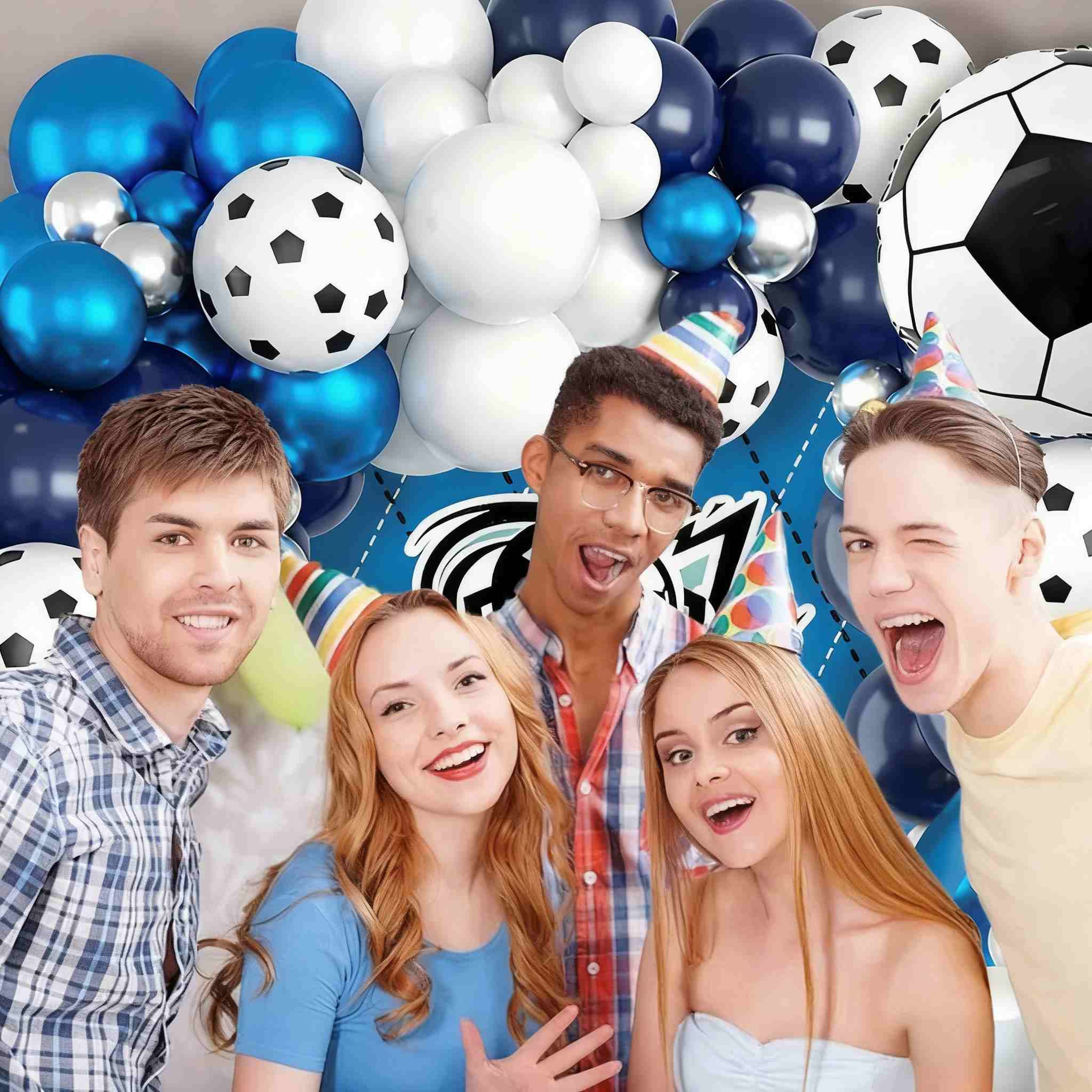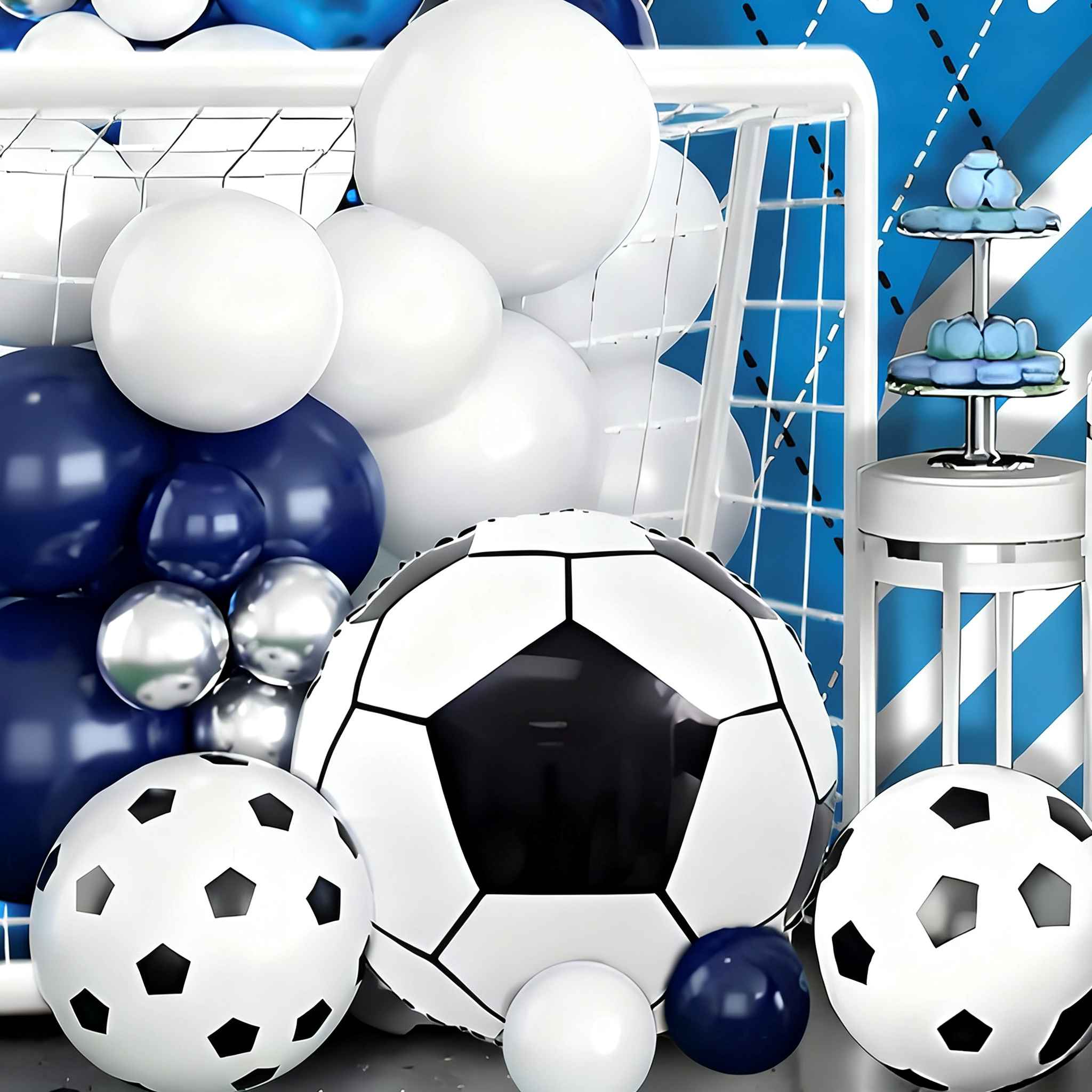 Mitä saat: Jalkapallon syntymäpäivän ilmapallokaarisarjat syntymäpäiviä, vauvajuhlia, juhlapyhiä ja vuosipäiväkoristeita varten yhdessä kokonaisessa sarjassa.