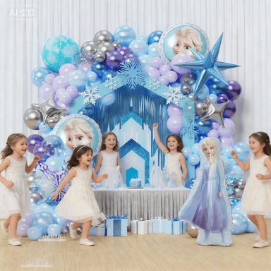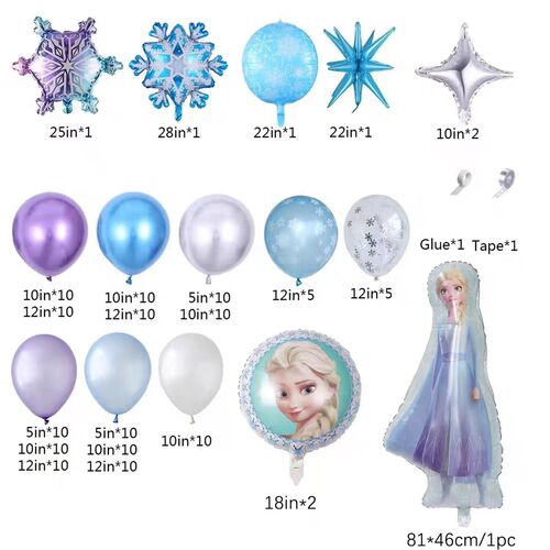 Frozen-teemainen ilmapallokaarisetti Disney-tyyliseksi tuotteeksi, jota lapset ja aikuiset rakastavat ympäri maailmaa.