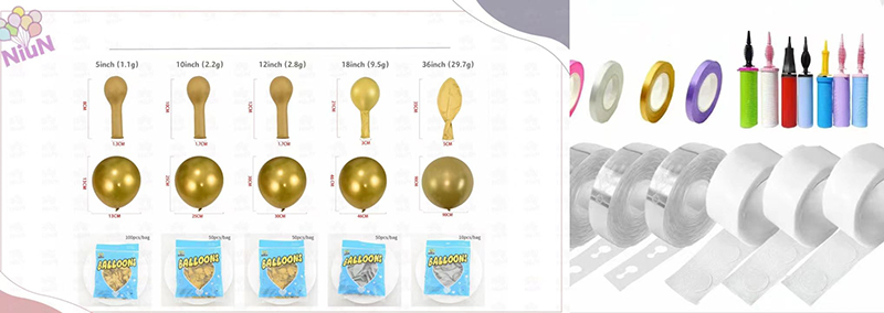 Kaaressa on Niun®-palloketju, liimapisteet ja siima. Käyttäjät voivat rakentaa sen millä tahansa tavalla tilaan sopivaksi. Se voidaan tehdä seppelesarjaksi tai seinäkoristeena. Se voi saada koko muotoon enemmän kerroksia. Ilmapallokokojen sekoitus saa muodon näyttämään kolmiulotteisemmalta ja elävämmältä. Voimme myös antaa ylimääräisiä ilmapalloosia tai asettaa mukautettuja määriä. Se voi täyttää erilaisia tarpeita erilaisille sisustuskohtauksille.