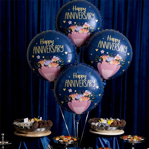 Tietenkin tuemme onnellisen vuosipäivän folioilmapallokoristeen räätälöintiä. Voit valita ilmapallon koon, määrän, värin ja erilaisia lisävarusteita mieltymystesi mukaan.