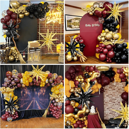Harry Potter -aiheisen ilmapallokaaren lateksipallo on valmistettu 100 % raakalateksista, joka on tuotu Kaakkois-Aasiasta. Koska ne ovat luonnonmateriaalia, ne ovat täysin ympäristöystävällisiä ja vaarattomia lapsille ja aikuisille. Niiden värit ovat Harry Potter -elokuvien symbolisia värejä, mukaan lukien viininpunainen, keltainen, musta ja kulta. Lisää kerroksia olemme lisänneet myös konfetti-ilmapallon, konfetti on metallikultaista.