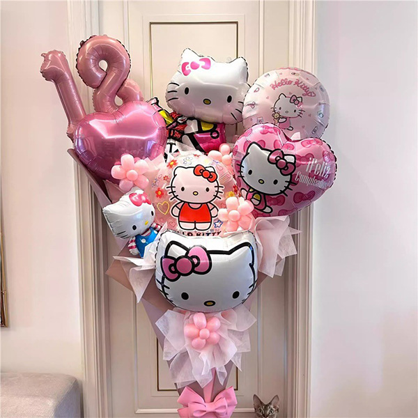 Hello Kitty on söpö kissan sarjakuvahahmo, on pyyhkäissyt ympäri maailmaa. Kiinassa valmistettu Hello Kitty -teemainen foliopallo on valmistettu korkealaatuisesta alumiinifoliomateriaalista, jolla on hyvä tiivistymisteho ja jota ei ole helppo vuotaa. Tässä foliopallossa on yli 30 tyyliä, joista valitaan, mukaan lukien pyöreät foliopallot ja kolmiulotteiset sarjakuvahahmot foliopallot. Kahden Hello Kitty -teemalla foliopallon yhdistelmä voi vastata eri tilanteiden tarpeisiin. Esimerkiksi perhejuhlia, syntymäpäiväjuhlia, yritystapahtumia tai muita juhlatilaisuuksia nämä foliopallot voivat lisätä iloisen ilmapiirin tapahtumaan.