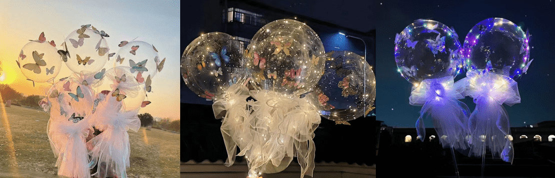 Ilmapallosarjat (mukaan lukien tavalliset erikokoiset ilmapallot, ilmapalloketjut ja esteet) ovat tärkeitä koristetuotteita, kuten festivaaleja ja juhlia, mutta yksi pakkaus on paksu ja raskas. Onttoja perhonen tarroja voi rikastuttaa asettelutasoja erän koristelun ja paikallisen keskittymisen avulla, mikä tekee suuresta asettelusta joustavamman.