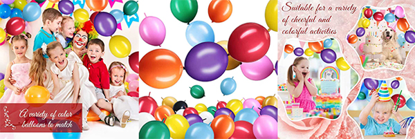 Lateksi-hännän ilmapallot tarjoavat tällä hetkellä laajan valikoiman kokoja, mukaan lukien 6 tuuman, 10 tuuman ja 12 tuuman ilmapallot. Väreihin kuuluvat makaron -hännän ilmapallot, mattapään ilmapallot ja metalliset takapallot. Latex -linkkipallot eri väreissä ja koossa voidaan helposti yhdistää muihin erikokoisiin ja tyyppeihin liittyviin lateksipallot, jotka luodaan täydellisen ilmapallojuhlakorusteen, lisäämällä hauskanpitoa juhliin ja jakamalla iloisia hetkiä perheesi kanssa.
