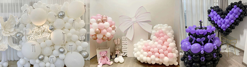 Eri kokoisia voidaan käyttää yhdessä. Pieniä ilmapalloja voidaan käyttää koristelu yksityiskohdina. Suuria ilmapalloja voidaan käyttää ilmapallokaariin tai ilmapallo -seppeleihin. Vaikutus näyttää silmiinpistävältä. Käytettynä Bobo -ilmapallojen, metallisten väripallojen tai foliopallojen kanssa, ulkonäössä on enemmän kerroksia. Tyyli rikastuu. Käyttö on erittäin leveä. Sitä voidaan käyttää hääissä. Sitä voidaan käyttää syntymäpäiväjuhlissa. Sitä voidaan käyttää myös loma -tapahtumissa. Se toimii pääkoristeena tai yksityiskohtaisena sisustuksena.