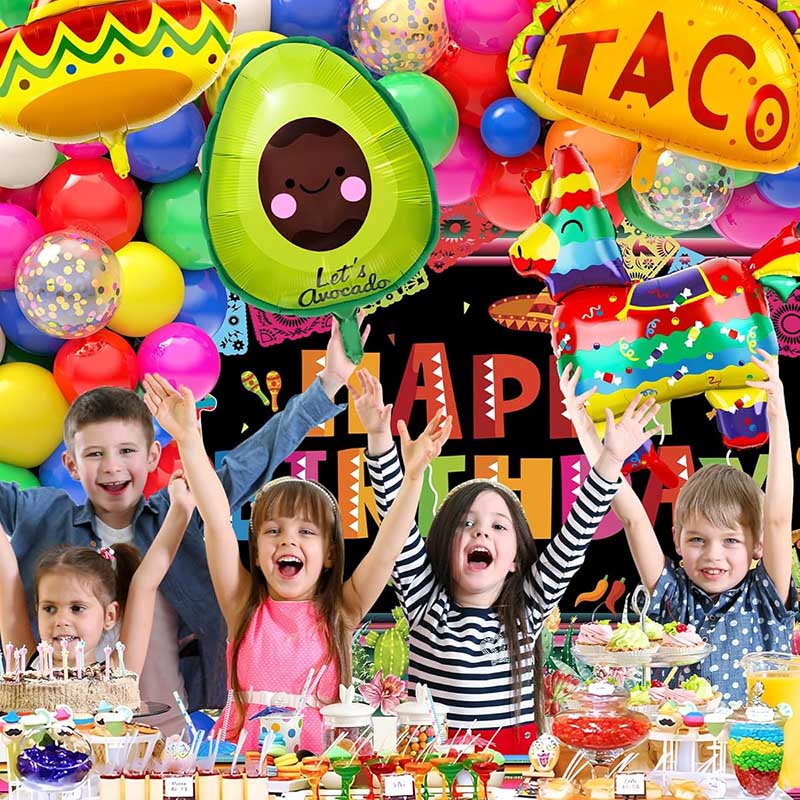 Uusin Meksikon Fiesta Balloon Arch Garland Kit tarjoaa erilaisia väriyhdistelmiä. Esimerkiksi tämä Mexican Party Decorations Fiesta Balloon Garland Arch Kit sisältää Happy Birthday -taustan, raidallisen pöytäliinan ja burriton, sombrero- ja kamelinmuotoiset alumiinifolioilmapallot. Borun Store tarjoaa myös räätälöityjä Fiesta Balloon Garland Arches tarpeitasi vastaaviksi. Voit valita tiettyjä ilmapallojen värejä ja erilaisia alumiinifoliopallotyylejä yhdisteltäväksi ja sopivaksi eri tilanteisiin.