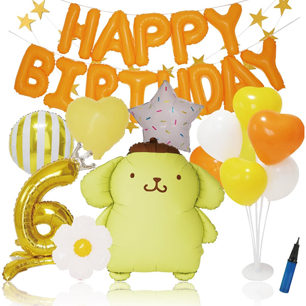 Tämä PomPomPurin-folioilmapallo sopii hyvin lapsille tai syntymäpäiväkäyttöön, koska olemme lanseeraaneet numerofolioilmapallosarjan. Tämä sarja sisältää PomPomPurin-foliopallon, PomPomPurin-painetun folioilmapallon, tähtifoliopallon ja numerofoliopallon. Nämä juhlatarvikkeet eivät sovellu vain syntymäpäiviin, vaan koristesetit ovat myös erittäin suosittuja lastenjuhlissa. Tämän sarjan käyttäminen lastenjuhlissa tekee juhlista mielenkiintoisemman ja ilahduttaa vieraita ja lapsia.
