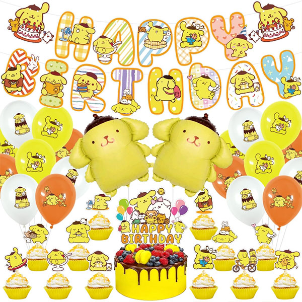 NiuN® Balloon Factory on myös yhdistänyt juhlasetin PomPomPurin-painetulle lateksipallolle, joka sisälsi syntymäpäiväjuhlan, kakunpäällyksen, PomPomPurin-painetun lateksipallon, kuppikakkupäällisen ja paljon muuta. Näiden koristeiden kuvat ovat värikkäitä ja niissä on käytetty ympäristöystävällistä painotekniikkaa, joka herättää tehokkaasti huomion ja parantaa juhlan visuaalista vetovoimaa. Tämä koristesarja on suunniteltu olemaan helppo koota ilman paljon aikaa, ja voit pitää hauskaa lasten kanssa. Se voi ripustaa syntymäpäiväbannerin helposti kattoon tai seinään, banneri on värikäs ja ilmapallo on helppo täyttää. Kakun koristeet on tehty kauniisti. Näillä syntymäpäiväjuhlatarvikkeilla voit aloittaa upean syntymäpäiväjuhlan hetkessä.