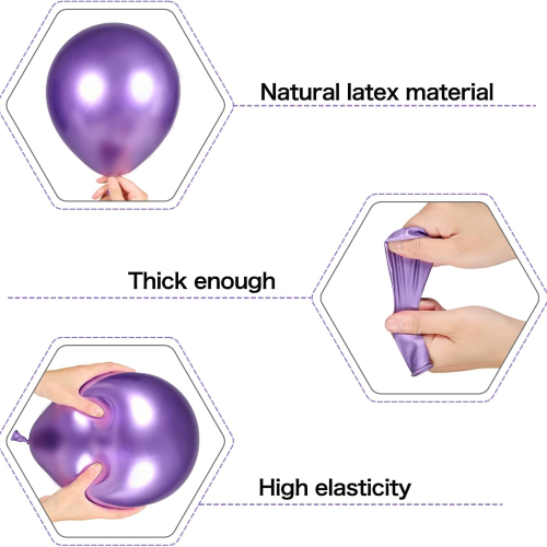 Violet ja mustat ilmapallomme on valmistettu luonnollisesta lateksista. Kun ilmapallot on täytetty, ne ovat muodoltaan täyteläisiä, eikä niitä ole helppo räjähtää. Niissä on kirkkaat ja elävät värit. Ilmapallomme ovat läpäisseet testit, kuten EN71, CPC ja CE. Ne ovat turvallisia ja myrkyttömiä, joten ne sopivat lasten leikkimiseen. Niitä voidaan myydä eri maissa.