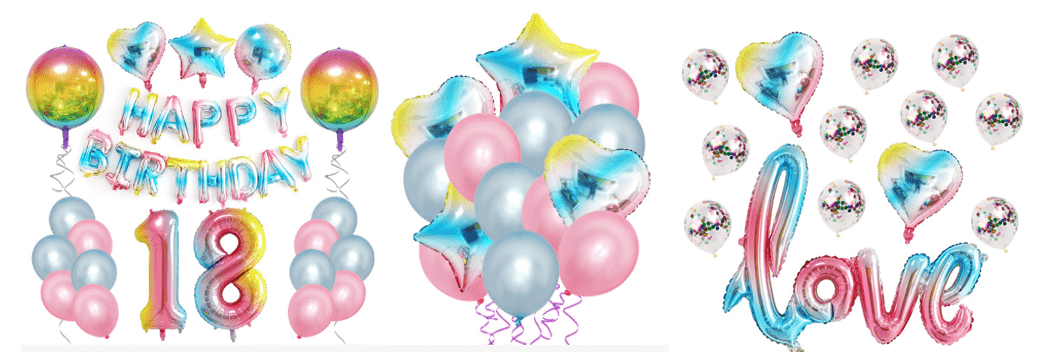 Värinäkökulma: Sateenkaarinumerofoliopallo, jossa käytetään gradienttikukintaa, väriompeleita, sateenkaariraitoja ja muita prosesseja, joissa on runsaasti erilaisia väritehosteita. Jotkut tuotteet perustuvat seitsemään perusväriin: punainen, oranssi, keltainen, vihreä, sininen, indigo ja violetti. Luonnollisen siirtymän asteittaisen muutostekniikan avulla ne luovat läpinäkyvän tekstuurin kuin sateenkaari sateen jälkeen. Jotkut tuotteet käyttävät värien törmäystä korkealla kylläisyydellä, kuten vaaleanpunainen ja sininen liitos, keltainen ja vihreä kaiku, jotka muodostavat vahvan visuaalisen vaikutelman ja valaisevat juhlatunnelmaa. Nämä värimallit mukautuvat yleisön psykologiseen kauneuden ja onnen assosiaatioon, jota sateenkaare symboloi, ja niitä voidaan myös mukauttaa eri teemoilla varustettuihin juhlatyyleihin.