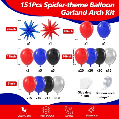 Hämähäkkipallokaariseppelesarja sopii hyvin kaikkiin juhliin, joita saatat tarvita. Kuten syntymäpäiväjuhlat, hämähäkkimies-elokuvan ystävien kokoontuminen, elokuvailta, vauvakutsu ja paljon muita juhlia. Niillä on laaja valikoima sovelluksia, joten niillä on erittäin hyvä myyntitulos. Niillä on laaja valikoima sovelluksia, joten niillä on todennäköisesti erittäin hyvä myyntitulos. Juuri tästä syystä monet asiakkaamme ovat valinneet tämän sarjan.