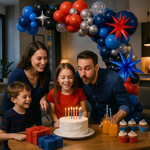 Ilmapallosetin päävärit ovat sininen, punainen ja musta. Kolme erottuvaa väriä saavat sinut kuvittelemaan elokuvan hämähäkkimiehen upeaa hahmoa. Tämän setin lateksiilmapallot sisältävät mattapunaisen ilmapallon, mattasinisen ilmapallon, mattamustan ilmapallon ja metallisen siivupallon. Tämän setin folioilmapallo on räjähdystähti folioilmapallo, jonka väri on sininen ja punainen.