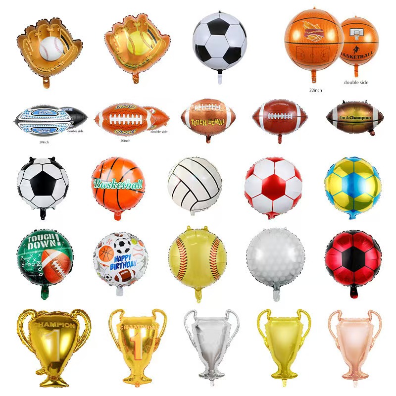 Urheiluaiheinen folioilmapallo on valmistettu korkealaatuisesta metallista alumiinifoliosta. Pinta on kirkas ja kiiltävä kuin urheiluvälineiden tekstuuri. Inflaation jälkeen sillä on vahva kolmiulotteinen tunne, pitkä ilmanpidätysaika, eikä sitä ole helppo vahingoittaa.