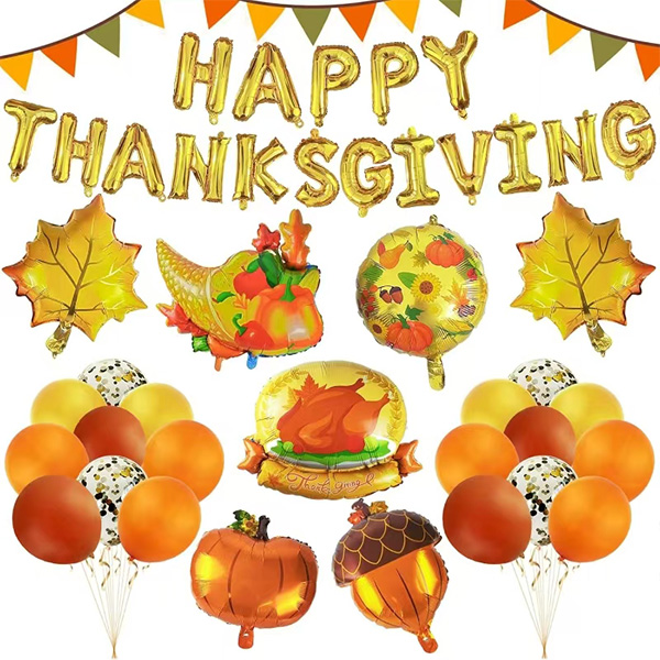 Kiitospäivän lateksipallot ovat lämpimät syksyn värit ja laadukkaat lateksimateriaalit. Ne ovat yksi klassisista koristeista kiitospäivää varten. Värit ovat usein oransseja, ruskeita, keltaisia ja viininpunaisia. Nämä lämpimät värit vastaavat kurpitsaa, vaahteralehtiä ja kalkkunoita. He voivat helposti osoittaa sadonkorjuun ja perheenyhdistyksen tunteen.